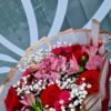 Baltos ir rožinės rožės ir nuostabiosios orchidėjos. Nuotraukoje pavaizduotas L dydis.