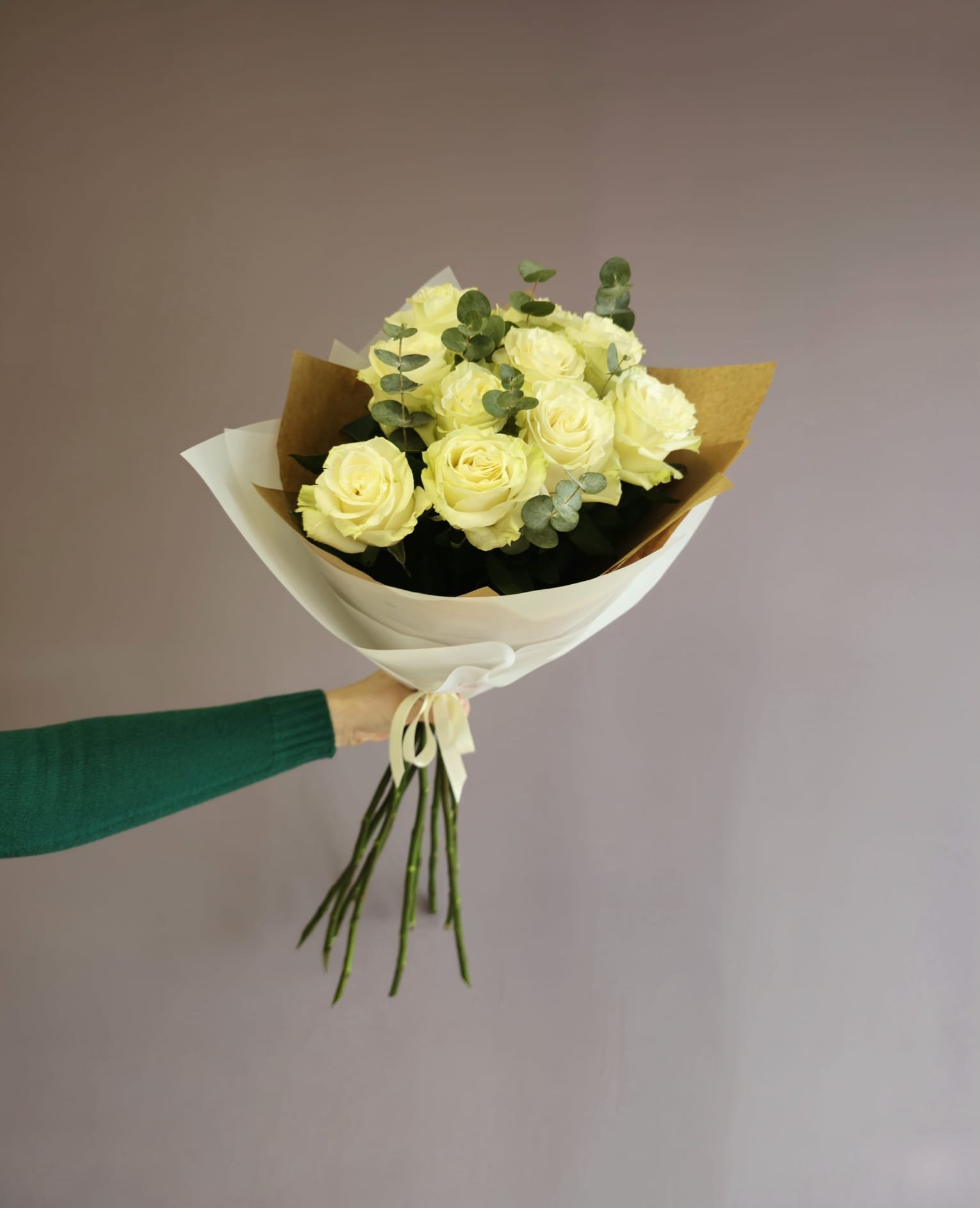 Tyra lyg debesis – baltų rožių puokštė. Nustebinkite bet kokia proga klasikos mėgėjus